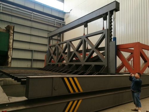 其中移動機架由型鋼、鋼板等焊接而成,輕巧并可靠。采用擺線針輪減速機、鏈條、鏈輪驅動在軌道上行走。